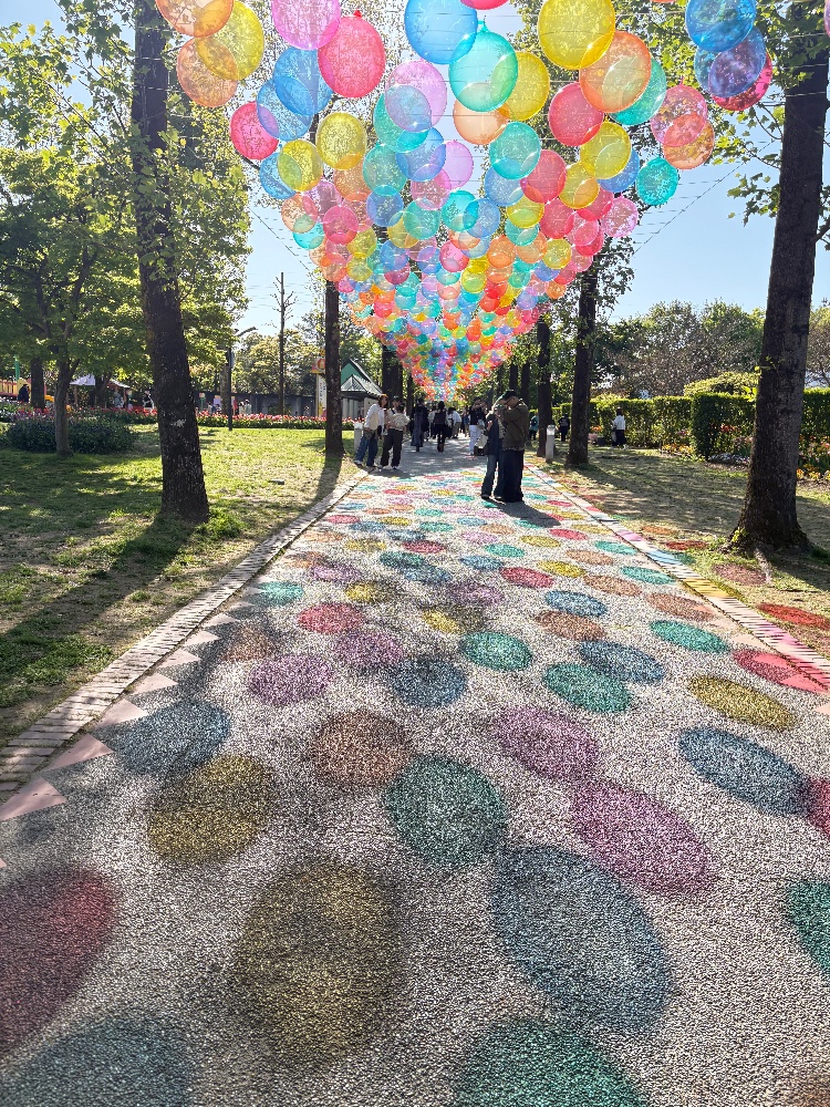 バブルスカイは長さ約200mに渡って色とりどりのバルーンが浮かぶ幻想的なフォトスポットです。